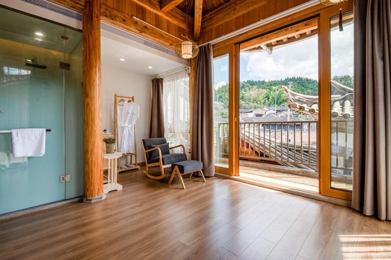 客栈位于和顺古镇风景秀丽的野鸭湖畔,依山而建的元龙阁边,比邻艾思奇故居,湿地公园等景点,自驾车可直达客栈门口,提供免费停车服务,步行10分钟即可到达和顺商业区,摆渡车通勤古镇全区,清静度假与市井烟火随意切换,提供腾冲免费接机接站服务。为你量身定制滇西行程规划和车辆安排,开放厨房 客人可亲自下厨烹饪美食,走进客栈,不同于常规酒店的落客区与大堂,这里的感觉更像是一个隐秘的中式园林,房檐上的青瓦,实木的柱子,和微白色草泥墙面的搭配,雕梁画栋间尽显奢华,给人的感受是避世和惬意,客房面积30--60平方之间,全景观泡池露台,放眼望去尽是蓝天白云和连绵青山,享受都市生活之外的宁静恬淡,听喜欢的音乐,读喜欢的书,喝清香的茶,看天上云卷云舒,沉浸在自己的世界里。房间内配备电动智能管家系统,声控开关灯台与窗帘,智能马桶,高配卫浴洁具,24小时热水供应,高端定制慕思床垫,纯棉高档床品,每间客房均配备茶盘和古树普洱茶,客栈内有中西独立餐厅,咖啡厅,酒吧,茶舍等休闲场所,酒吧内有红酒,白酒,洋酒,特色本地泡酒等,早餐供应云南特色佳肴,下午茶免费提供现磨咖啡和点心,全自动烘干洗衣机免费使用。