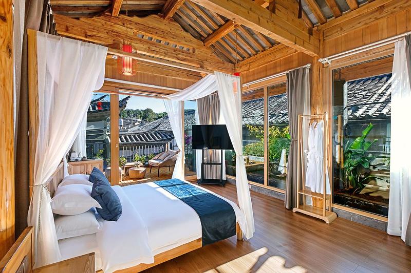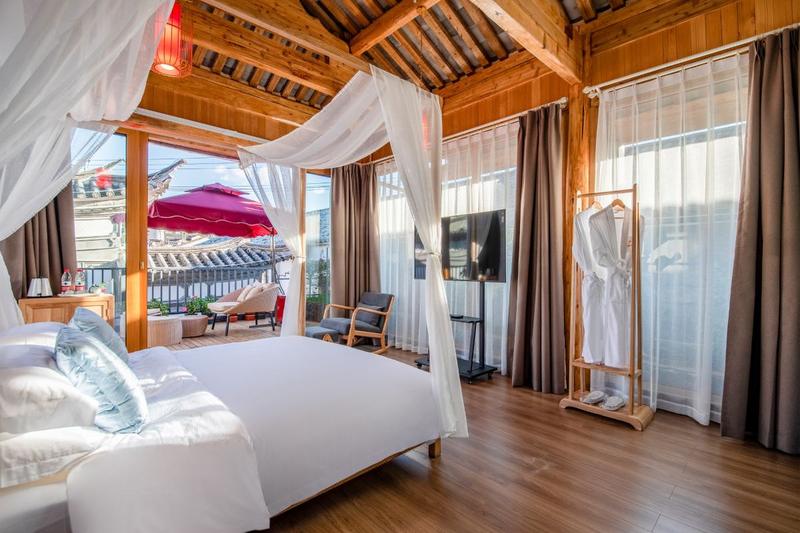客栈位于和顺古镇风景秀丽的野鸭湖畔,依山而建的元龙阁边,比邻艾思奇故居,湿地公园等景点,自驾车可直达客栈门口,提供免费停车服务,步行10分钟即可到达和顺商业区,摆渡车通勤古镇全区,清静度假与市井烟火随意切换,提供腾冲免费接机接站服务。为你量身定制滇西行程规划和车辆安排,开放厨房 客人可亲自下厨烹饪美食,走进客栈,不同于常规酒店的落客区与大堂,这里的感觉更像是一个隐秘的中式园林,房檐上的青瓦,实木的柱子,和微白色草泥墙面的搭配,雕梁画栋间尽显奢华,给人的感受是避世和惬意,客房面积30--60平方之间,全景观泡池露台,放眼望去尽是蓝天白云和连绵青山,享受都市生活之外的宁静恬淡,听喜欢的音乐,读喜欢的书,喝清香的茶,看天上云卷云舒,沉浸在自己的世界里。房间内配备电动智能管家系统,声控开关灯台与窗帘,智能马桶,高配卫浴洁具,24小时热水供应,高端定制慕思床垫,纯棉高档床品,每间客房均配备茶盘和古树普洱茶,客栈内有中西独立餐厅,咖啡厅,酒吧,茶舍等休闲场所,酒吧内有红酒,白酒,洋酒,特色本地泡酒等,早餐供应云南特色佳肴,下午茶免费提供现磨咖啡和点心,全自动烘干洗衣机免费使用。
