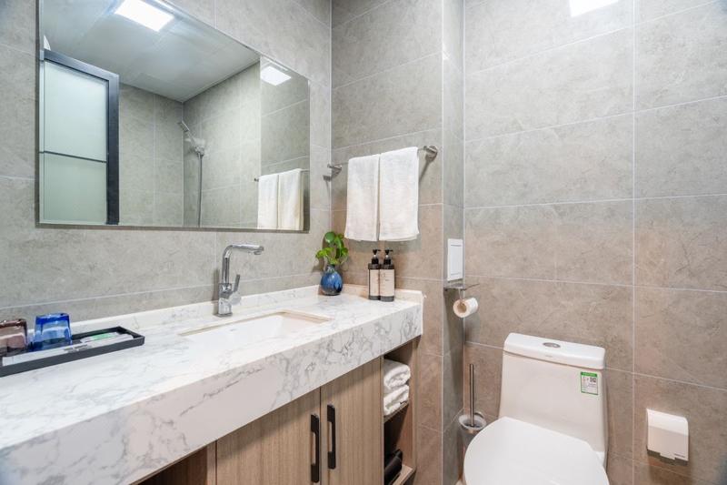 酒店有豪华大床房,设施齐全,干净整洁,近万平口景区,海纳商圈,有免费停车场