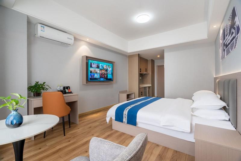 酒店有豪华大床房,设施齐全,干净整洁,近万平口景区,海纳商圈,有免费停车场