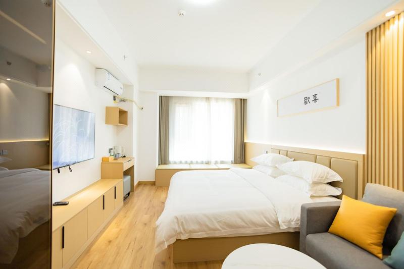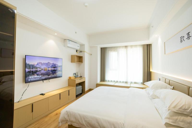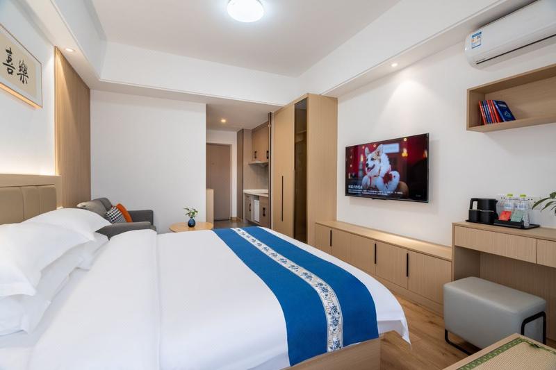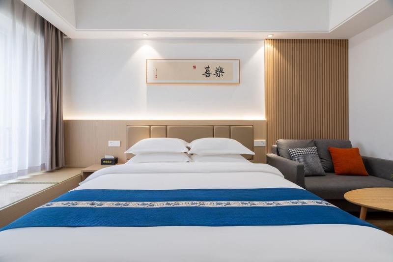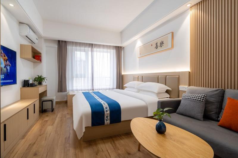 酒店有豪华大床房,设施齐全,干净整洁,近万平口景区,海纳商圈,有免费停车场