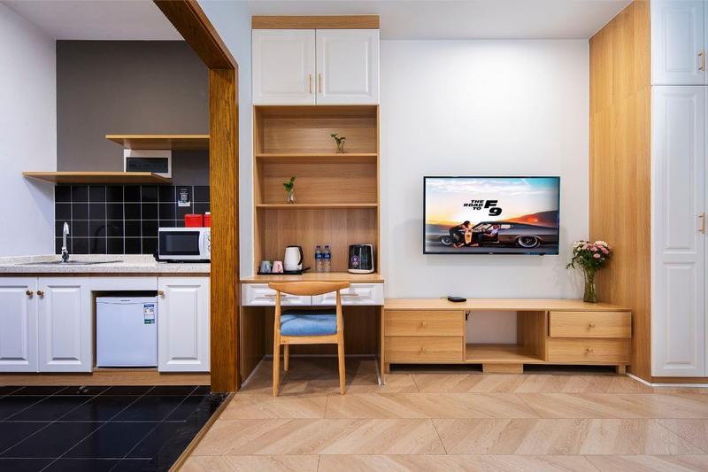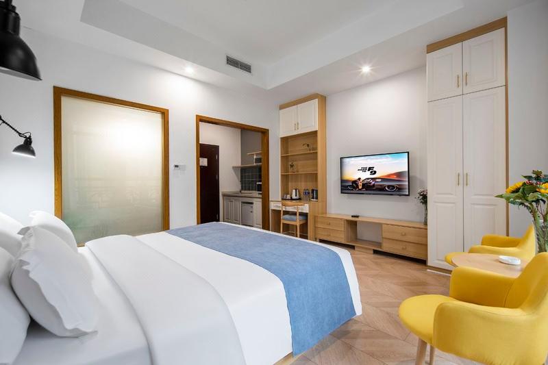 宜宾市临港新区地标建筑“APM广场”距离白塔山风景区约3.6公里,天立国际学校(中小学)约1.2公里;周边就有绿源超市,药店、银行、公交站、火锅店、川菜、万家福、KTV、酒吧、网红打卡地(水街)约1.3公里、第二人民医院临港院区等商业体均在2公里之内。浙商临港新天地更是一个美食广场,电影院、服饰、娱乐等等聚集地。 公寓配有精致大床房、拾光双床房、高级观景房,能满足不同客户群体的居住体验需求。房间装修简约,时尚和现代的元素。房间整洁亮丽,家具家电齐全,是出差和旅行的居住优选。