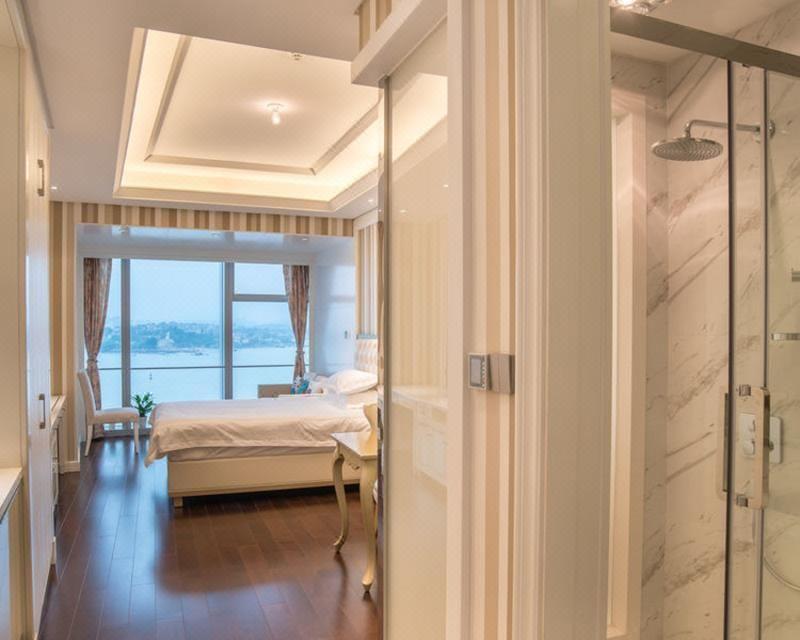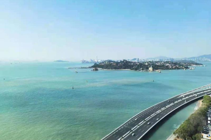 厦门怡海湾双子塔海景公寓位于厦门地标——世茂海峡大厦。大厦共计64层,300多米高,外观采用的是帆船建筑, 犹如扬帆起航的帆船迎风而来。公寓大厦周边景区密集,到厦门大学和南普陀步行5分钟左右;步行约十分钟就可以到达厦大白城;离中山路和曾厝垵都很方便;下楼50米不到就是厦门沙坡尾;楼下另一边就是厦门临海位置非常棒的观景台。 公寓房间整体设计采用的是时下流行的简欧风格,空间呈现温馨的暖色调。白色的石膏板吊顶,配上特有的浅褐色和白色相间的竖纹墙纸,加上深色的木地板,再用暖色的沙发和床,以及暖色的书桌、衣柜进行点缀,营造出典雅、自然、高贵的气质、浪漫的情调。 生活在繁杂多变的世界里已是烦扰不休,而房间营造出简洁、自然的生活空间却能让旅者身心舒畅,感到宁静和安逸。借着室内空间的重组,便可以满足我们对悠然自得的生活的向往和追求,让我们在纷扰的现实生活中找到平衡,缔造出一个令人心弛神往的写意空间。 不论是公寓的装修材料,还是房间里的设施和设备均为进口国际品牌,耗巨资打造,智能密码锁系统、烘干机、洗衣机、电视机、电冰箱、微波炉、热水器等等设备一应俱全!还有电动窗帘,一键开关,即可享受厦门的山、海、城的美丽风光。