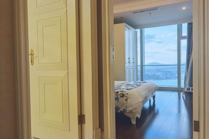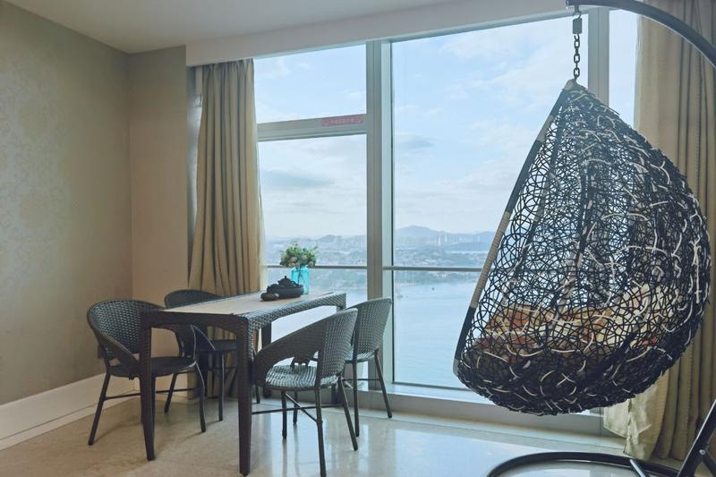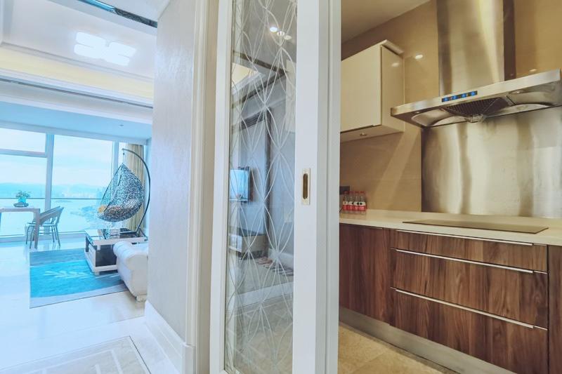 厦门怡海湾双子塔海景公寓位于厦门地标——世茂海峡大厦。大厦共计64层,300多米高,外观采用的是帆船建筑, 犹如扬帆起航的帆船迎风而来。公寓大厦周边景区密集,到厦门大学和南普陀步行5分钟左右;步行约十分钟就可以到达厦大白城;离中山路和曾厝垵都很方便;下楼50米不到就是厦门沙坡尾;楼下另一边就是厦门临海位置非常棒的观景台。 公寓房间整体设计采用的是时下流行的简欧风格,空间呈现温馨的暖色调。白色的石膏板吊顶,配上特有的浅褐色和白色相间的竖纹墙纸,加上深色的木地板,再用暖色的沙发和床,以及暖色的书桌、衣柜进行点缀,营造出典雅、自然、高贵的气质、浪漫的情调。 生活在繁杂多变的世界里已是烦扰不休,而房间营造出简洁、自然的生活空间却能让旅者身心舒畅,感到宁静和安逸。借着室内空间的重组,便可以满足我们对悠然自得的生活的向往和追求,让我们在纷扰的现实生活中找到平衡,缔造出一个令人心弛神往的写意空间。 不论是公寓的装修材料,还是房间里的设施和设备均为进口国际品牌,耗巨资打造,智能密码锁系统、烘干机、洗衣机、电视机、电冰箱、微波炉、热水器等等设备一应俱全!还有电动窗帘,一键开关,即可享受厦门的山、海、城的美丽风光。
