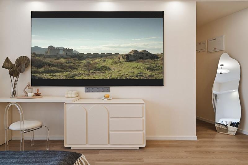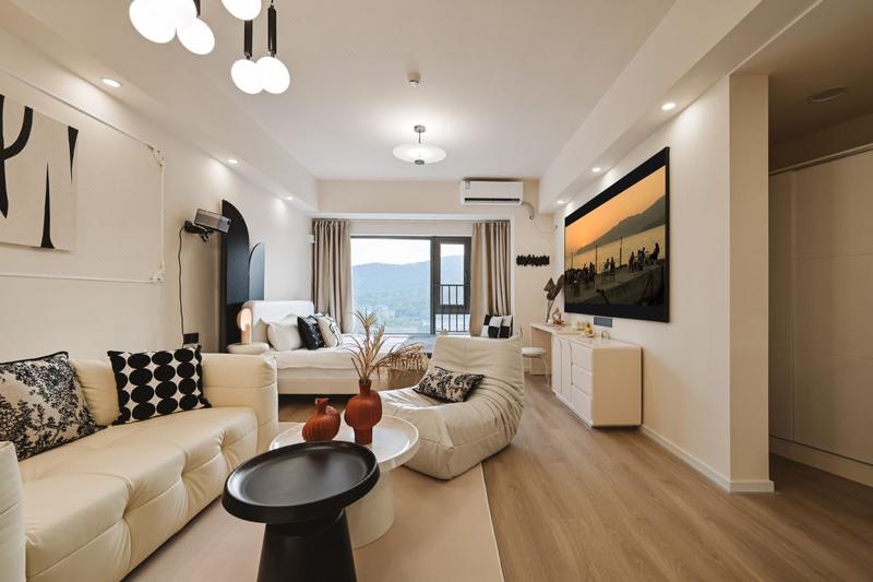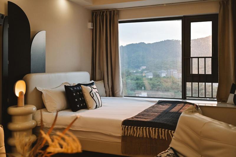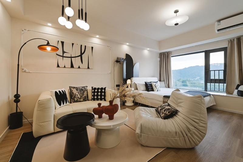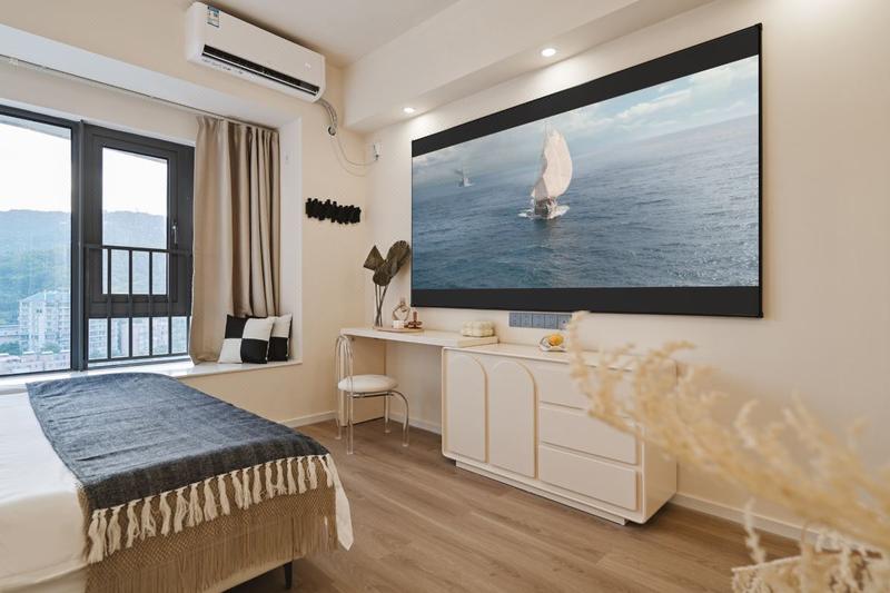 房间:奶油风山景大床房(100寸极米投影+高层山景+智能洗衣机)
