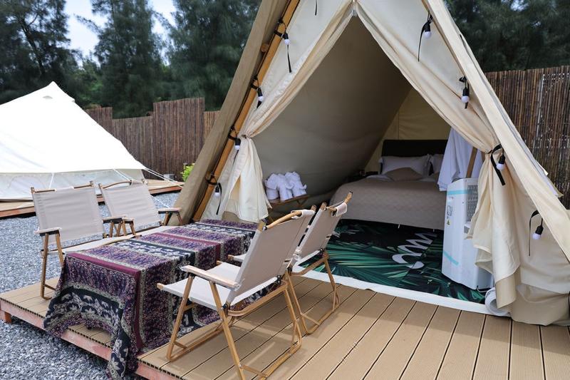 北纬22°,旅游的纬度天堂,幕野星空营地坐落于世茂碧海银湖婚纱摄影基地内——中国的马尔代夫,所有将从这里浪漫开始!碧海银湖婚纱摄影基地里面的幕野星空营地正选用其最风景秀丽之处,以40亩之地开辟出一方天地,超长黄金海岸线勾勒出海滨的浪漫景色,海枯石烂,浪漫不渝的含义尽显其中。 幕野星空营地拥有超过2000平方大草坪,营地有星空观景房、三角木屋、特色营帐等供您选择。同时,营地还有各种精美美食佳肴以及精美甜品、手冲咖啡,满足自然山水间的仪式感,在这里你不光可以静静地坐在帐篷外夕阳,还可以伴着温柔的晚风开最美夕阳西下的芦苇随风飘荡。 暖阳下,三五好友相聚,围炉煮茶,闲有可栖,是人间烟火,亦是清欢岁月,营地配备了高端围炉煮茶和烧烤炉,不管是亲子出行、情侣约会、好友聚会,或公司团建,你梦中的露营场景,这里都有。 如果那天天气好的话,在晚上8-9点左右,或许你就可以用肉眼看到银河。要是你那天运气爆棚的话,还有可能遇见流星划过,这个时候你可以闭上双眼许愿,或许未来的某一天,你的愿望将会实现。 篝火点燃,美食就着美酒,和TA在星空下的草地互诉彼此的心声,比玫瑰花更浪漫的便是和你享受此时此刻。夜幕降临,远处是清冷的古兜山色和满天繁星,眼前是用星空勾勒出线条的帐篷屋顶,伴着动听的音符,枕着你的名字而眠,当灯光亮起,这如梦如幻的生活照进了很多年前人的心里。 基地内30000平方米宏大诗篇,自然景观与精心打造的拍摄场景在这里交融,开启一场华丽的影像冒险,让我们用影像留下你的眼中星河、笑里清风。自然的/现代的/古典的/清新的,琳琅满目的风格选择只为与你共赴一场场盛大瑰丽的梦境。