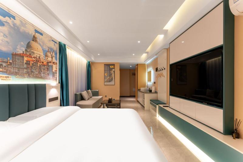 本店为全屋智能酒店,65寸电视加坚果投影巨幕,乳胶床品,为您提供温馨便捷的住宿体验。经过一座城,寻觅一间房,消去您满身的疲劳,我们将以热情的服务,舒适的房间,期待您的到来。我们,在这里,等您来。