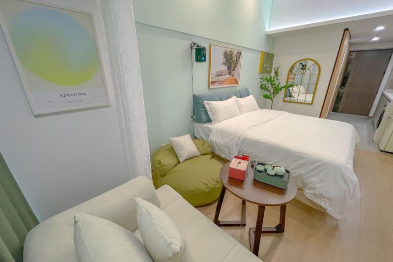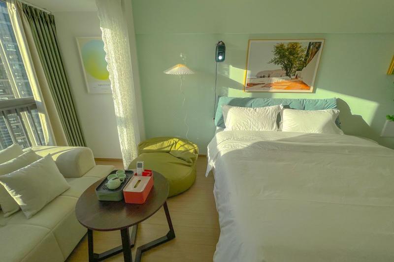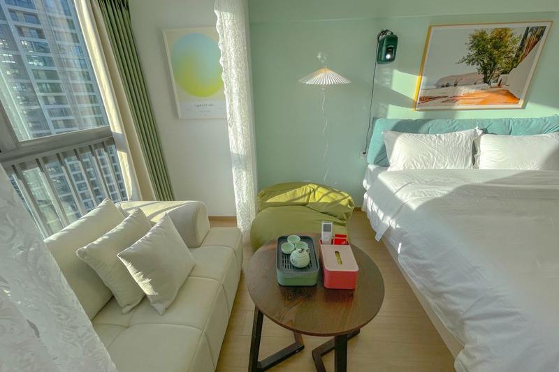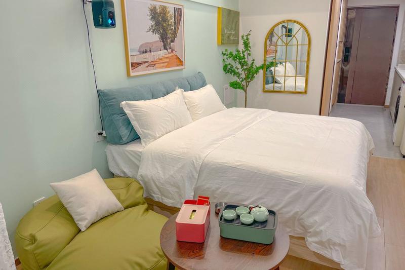 公寓位于汕头市龙湖区东海岸华润置地公馆南塔公寓,楼下就是〔万象汇〕〔怡轩邻里中心〕〔蓝水星游乐园〕,可以满足房客吃喝玩乐,酒店公寓配有高档大堂,24小时监控以及保安巡逻,并且前台客服24小时在线随叫随到! 我们的客房以年轻人喜爱的多种主题设计风格为主打,采用密码门锁,房间内配套高清投影仪、冰箱、洗衣机、空调、一次性有(洗漱用品、浴巾毛巾、拖鞋、马桶垫),功夫茶具以及红酒,有景观美丽的落地窗,力争给每一位客人提供舒适人性化的住宿环境。