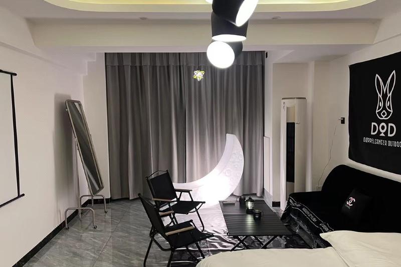 - 房间(开放): 楼 黑灰露营风-巨型月亮灯