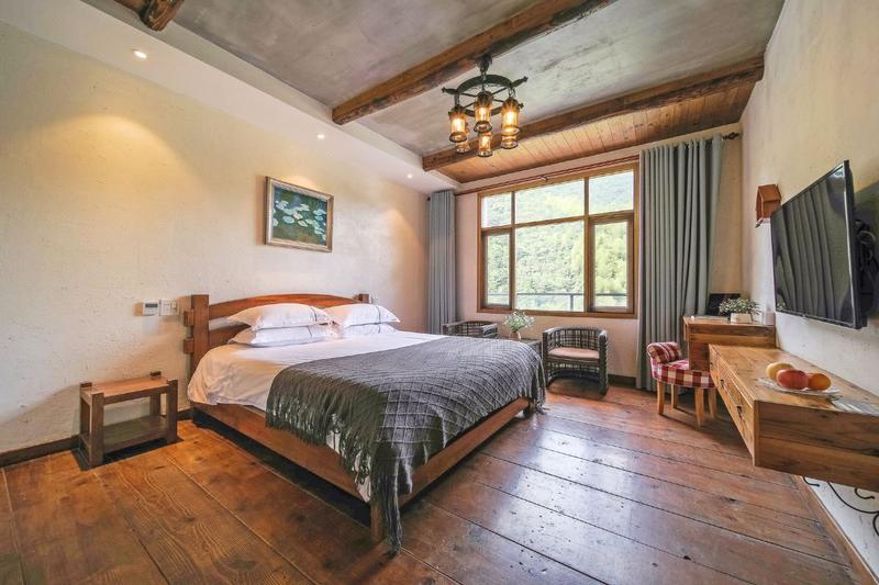 民宿位于安吉,德清,余杭三县交界的石鹰山谷,交通方便,位置优越,十八道湾漂流就在山下,步行约10分钟;距离莫干山筏头集散中心,S14高速安吉收费站,杭州Hello Kitty主题乐园,安吉县城,中国大竹海均约12公里,约20分钟车程左右。 民宿整体建在半山腰,四面环山,景色秀丽,空气清新 堪称天然氧吧!民宿建筑以原木原生态装修风格,共拥有9间不同设计的客房,其中6间大床房,2间亲子房,1间套房,家电设施齐全,并配有品牌洗漱用品。 民宿另设有休息区,为了满足顾客对乡村度假的需要,民宿还配置了小型会议室,卡拉OK室,棋牌室,管家,烧烤,户外观光厅等。专为顾客提供乡村生活的非凡度假体验!
