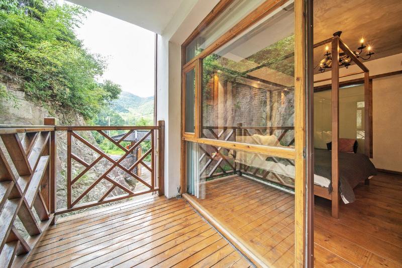 民宿位于安吉,德清,余杭三县交界的石鹰山谷,交通方便,位置优越,十八道湾漂流就在山下,步行约10分钟;距离莫干山筏头集散中心,S14高速安吉收费站,杭州Hello Kitty主题乐园,安吉县城,中国大竹海均约12公里,约20分钟车程左右。 民宿整体建在半山腰,四面环山,景色秀丽,空气清新 堪称天然氧吧!民宿建筑以原木原生态装修风格,共拥有9间不同设计的客房,其中6间大床房,2间亲子房,1间套房,家电设施齐全,并配有品牌洗漱用品。 民宿另设有休息区,为了满足顾客对乡村度假的需要,民宿还配置了小型会议室,卡拉OK室,棋牌室,管家,烧烤,户外观光厅等。专为顾客提供乡村生活的非凡度假体验!