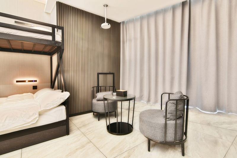 • 说明: 2张1.8米上下铺 | 80m² | 落地窗 | 可吸烟