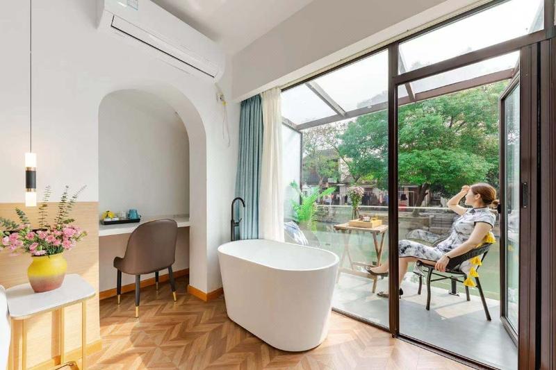 酒店坐标同里古镇,被列为国家旅游局5A级旅游景区,隶属苏州市吴江区,宋代建镇。酒店在同里古镇仅仅几年拓展至数十家民宿,利用住宅空闲房间或者闲置的房屋,结合当地人文、自然景观、生态、环境资源以家庭副业方式经营,集度假 团建 休闲 品茶 娱乐为一体,也许没有星级酒店的高级奢华,但装修简洁大方,既有现代感也很好融入了当地特有的娴静气质,更是让人体验当地风情,感受民宿主人的热情与服务、并体验有别于以往的生活。