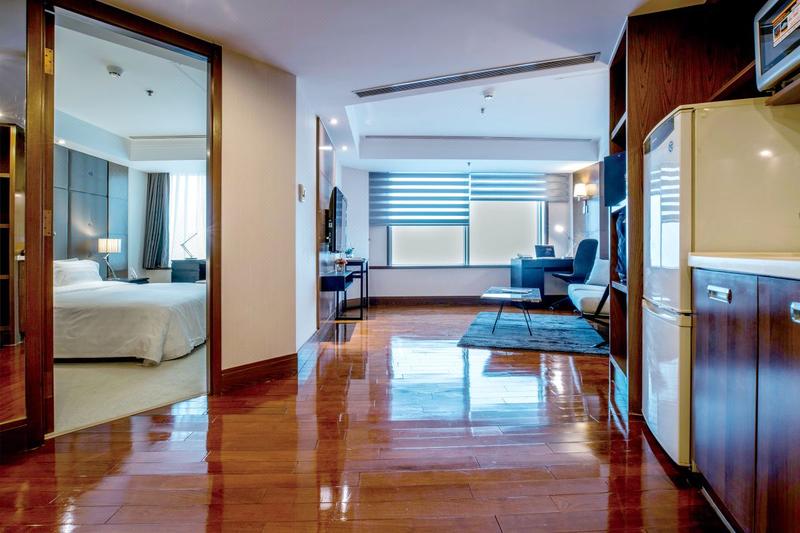 北京京广中心公寓位于朝阳区东三环CBD商圈中心区,毗邻国贸中心,华贸中心,万达广场,世贸天街,燕莎中心及使馆区。交通十分便利,地铁10号线呼家楼站直达。京广中心为北京市地标性建筑,视野开阔,居高临下,京城尽收眼底。酒店可轻松到达中国著名文化胜地,如故宫和天安门广场。 北京京广中心公寓经过大规模的装修工程后已焕然一新,包括豪华尊贵的行政楼层、时尚新颖的咖啡厅和大堂酒廊及富丽堂皇的酒店大堂。酒店所有客房都配有专门定制的豪华寝具,保证每位客人都能甜梦入睡。