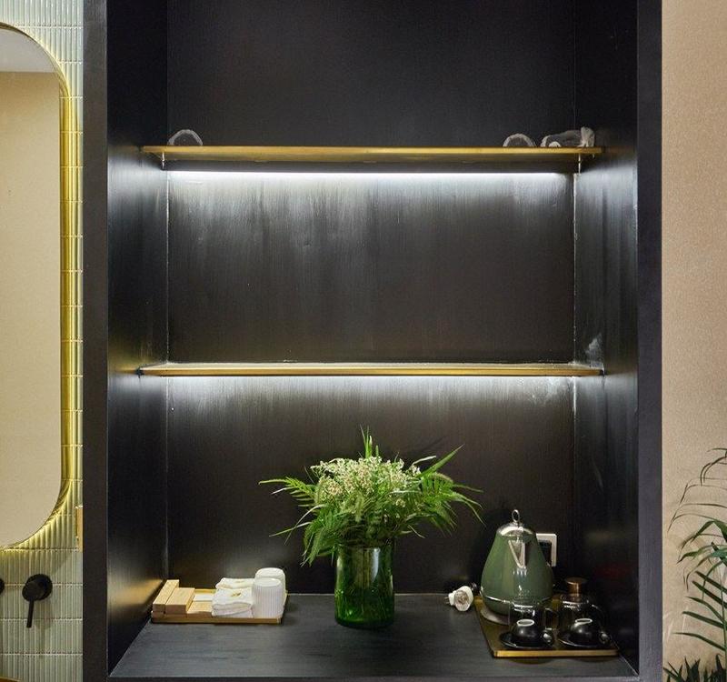 水是眼波横,山是眉峰聚。 湖城坐落于绿水青山之间,木食则隐于湖城之中。 木食•老湖州城市民宿的设计师沈勇(笔名老南瓜)是资深的品牌策划师、建筑设计师、室内设计师,拥有20余年从业经验。他是杭州名仕装饰设计创始人、素墨堂设计创始人。 大名鼎鼎的莫干山•隐西39和语自在•墙门文化精品民宿均由其独立操刀设计。而木食•老湖州城市民宿则是他的又一力作。 人生只合住湖州,这个隐于江南,诞生过张志和、赵孟頫的城市,有着其非凡的魅力,需要在对的时间和对的地点去发掘。 而木食却以另一种方式将湖城山水览进一居之内。 入户便是跃然于眼的娟娟水流和静溢枯山水,拾阶而入,黑钢和木搭配而成的阶梯式座椅让人眼前一亮,颇具古意的吧台和茶座以及被流水环绕的开放式茶室相呼应,多种元素完美地融合于一厅之内。 无论是会议、包场还是公司团建,这都是非常好的选择。 而吧台,又是木食的一大特色之一。 木食的所有咖啡豆都是自己烘焙,由数年咖啡工作经验的咖啡师每日调试,并且配备咖啡机中的玛莎拉蒂—La Mazzocco GS3,其品质不仅在民宿中,就算是放置于精品咖啡馆也能占据上席之位。 而木食的茶叶也是上选,这里有湖州知名的黄金芽、来自武夷山的肉桂、来自福鼎的陈年老白茶和老板珍藏多年的陈年古树普洱。你永远猜不到,木食有多少好茶。你更不会知道,木食的管家还都是资深茶艺师,她们很愿意和你聊聊茶,或者咖啡。 当然,你还可以在木食享用到红酒和鸡尾酒调饮以及精酿啤酒和清酒等各种酒饮,木食也可以化身为一个隐于城市角落的安静小酒馆。 现在,我们继续拾阶而上,自然就到了住宿区了。 木食•老湖州城市民宿采用了全智能化家具设计,进门只要打声招呼,贴心智能管家“小爱同学”便会为你打开窗户和灯。智能家具连接着所有的灯光、窗帘窗纱、音响和投影设备,无需动手找开关,轻轻张嘴,便能控制全屋。 家具陈设采用黄铜、黑钢、大理石等质感十足的元素,抱枕和摆件颇具当地特色,和老湖州风格相呼应。 高明的设计不是华丽的炫技和无畏的奢侈堆砌,而是润物细无声的体验,这也是设计师老南瓜常说的一句话“让设计润起来”。 木食共有七个房间,分别是“个么”、“粑忒”、“吻得”、“澜哉”、“介滚”、“符锁”、“宵旮” 不是湖州的朋友看到这些肯定有些云里雾里,但是老湖州人看到必然会焕然大悟,然后会心一笑。 原来这都是湖州本地的常用方言音译。这其中释义且让我慢慢给你们道来。 “个么”的意思是——那;是句首的发音,是最开始也是最常用的话,亲切而又温和。像是每个地区都会有的口头语一样,没了它语句也通顺,但是却少了点味道,而“个么”就是湖州的味道。 “粑忒”的意思是——再见或者慢慢来;是温柔的道别和另类的欢迎,透露着关心和湖州人的热情。不同于再见二字的随意性,“粑忒”透露出的是让人内心微微湿润的关心。 “吻得”的意思是——哇塞、哎哟;仿佛能从文字中能听见声音,那是带着笑意的赞赏,也是独特的打招呼方式。 “澜哉”的意思——超级棒;这也是老湖州人的口头禅“烂赞”,例如“木食真的是烂赞”,是不是一下就能体会到了呢。 “介滚”的意思是——厉害,也能体现事情的高程度;可以把这当做“这么厉害啊!”的意思,仿佛有种亲切的感觉在耳边萦绕,虽是俗语,却很近人。 “符锁”的意思是——干嘛,随意的一句却搭载了生活琐碎片段的大部分,是让人莫名放空的一句话,字里字外都透着一股悠闲写意。 “宵旮”的意思是——别这样啊;这种略显亲昵的话语总是能在无形间把人和人的距离拉近,让生分在无形间消失,让舒适充斥与你我之间。说这句话的时候,大家想必都是带着发自内心的笑容的。 老湖州的魅力不仅仅在于绿水青山和小桥流水,更在于这个历史文化名人云集的老城居民一颦一笑,举手投足间流露的畅意和舒然,这是在其他地方很难体会到的。 而木食•老湖州城市民宿将将这些,都融入到了自己的每一处细节设计之中,我们很难将之一语道尽。如果你想了解更多老湖州特色,想了解木食,那不妨来这坐坐,我们话语闲聊,为你细细道来。