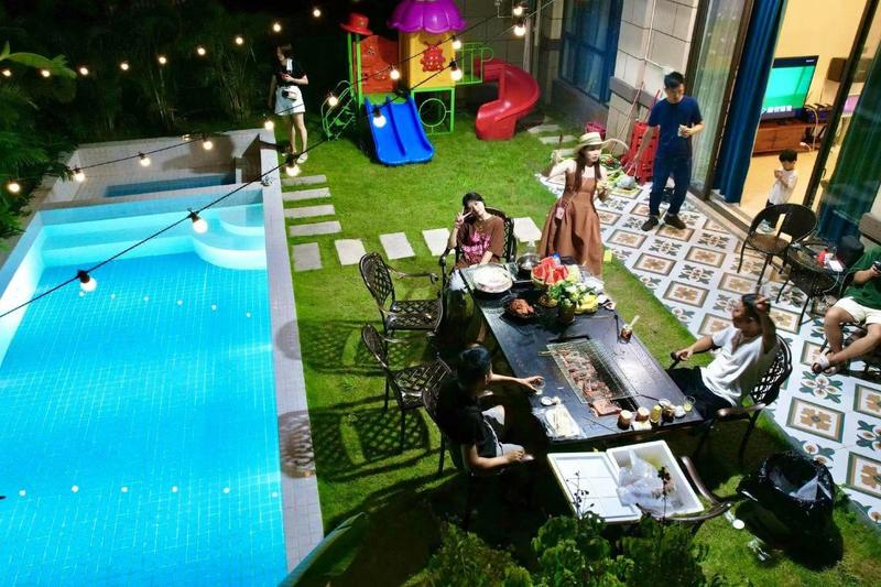 摩洛语·5房花园别墅(花园泳池+自助烧烤+音乐KTV+麻将机+厨房)