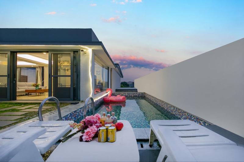 夕阳微醺8房泳池别墅(麻将机+KTV+厨房+烧烤)