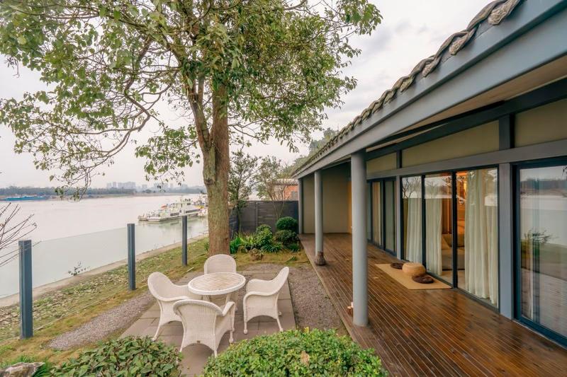 位于乌尤坝乌尤寺,近乐山大佛。 民宿特别邀请四川大学艺术研究院副院长、对青衣文化研究多年的周炯焱教授为整个院落量身打造。建筑整体围绕百年林木进行修建,与自然合为一体。以艺术和人文为主调:中式的回廊设计、现代的建筑风格、禅意的气氛格调, 一方青苔,一颗苍松,一处石组,甚至渗入了日式庭院中枯山水的意境,将山水自然浓缩为静思空间,实现建筑、山水与人之间的共鸣,每一处都是心灵放松、思悟的空间。 在通透的公共区内,陈列了诸多当代艺术品,辉映着室内时髦的家具,用潮流的方式演绎中国风。当草坪延伸到面向岷江的水系平台、当壁炉旁的冉冉檀香透过窗,当行走在全落地窗的美术馆,无不让人仿佛穿梭于传统与现代时空的交响。 民宿仅打造出十余间独院套房,适合家庭出行和小型团建。庭院式又保证了私密性。面朝岷江一线的江景套房,面对江水止不住婀娜地流淌,薄雾渺渺、竹风徐徐、禅韵隐隐、水声潺潺。其中四间带有泡池,夏季漂浮戏水,冬季来了泡暖汤。在池中发呆,然后一回神,置身宇宙,不见烦忧。而在园景套房中,可赏园林、可冥想,让整个空间与天地山水间的灵气结合在一起,内心自然安宁与熨帖。