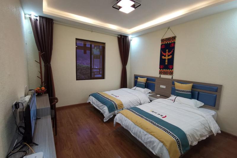 孜玛民宿,共有16间房,内设茶室、休息区、多功能的自助厨房。 位于四川省凉山彝族自治州普格县螺髻山镇彝寨,寨内有彝族特色民居、土司府、毕摩和苏尼园、寨门、碉楼、水景街等特色建筑,设置彝族服饰、彝族饮食、彝族文化及商贸四大功能区。