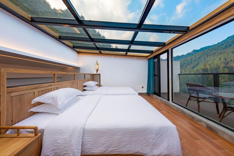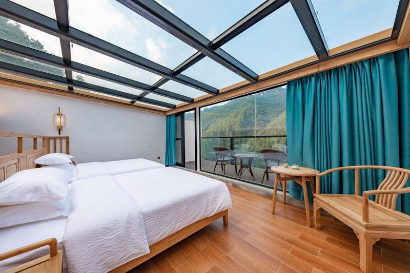 张家界栖泉度假民宿坐落于武陵源区锣鼓塔街道张家界村新屋组155号,距张家界国家森林公园门票站近在咫尺,地理位置得天独厚,交通便利。栖泉度假民宿为一座长在山泉上的院子,因栖居山泉之上而得名。此泉名为富田天然山泉,长年潺潺涓流,是金鞭溪水源地之一,水质零污染;饮用入口甘冽,水质绵软,回味清甜;天然弱碱性低氘水,富含多种天然微量元素,比例均衡,矿化度适中,长期饮用有益身体健康。 栖泉度假民宿的主人是土生土长的土家族人,民宿设计外观保留土家古风特色,内在设计现代中式轻奢。客房内部空间宽敞、布局合理、装修考究;全景落地玻璃窗设计,有全玻璃屋顶的星空阁楼房,零距离亲近大自然。清晨与林鸟相望,夜晚枕星入眠。躺在床上即能欣赏核心景区绝美自然山峰。民宿还内设有全日制餐厅及传统自然农耕生态菜园体验区、旅游康养等项目。 张家界栖泉度假民宿地处半山上,由森林包裹,原生态材料打造,留住了土家文化肌理,山景月色凉亭小憩,享受和煦温暖阳光;露台上品一壶茗茶,浅尝一口土家族特色美食及土家养生药膳。推窗即现张家界峰林,有隐于野的惬然,在静穆之中享受清清浅浅地摇曳着返朴归真的慢生活。我们尊重自然法则,以张家界旅游资源为依托,充分挖掘中土家医药养生健康文化,以“归栖璞真,康养而居”为核心理念。强力打造集素雅客房、特色美食,旅游康养、土家文化等体验于一体的张家界康养度假民宿。