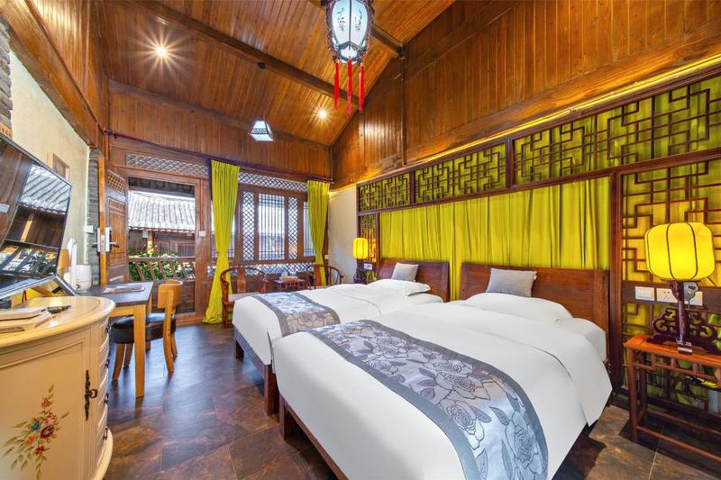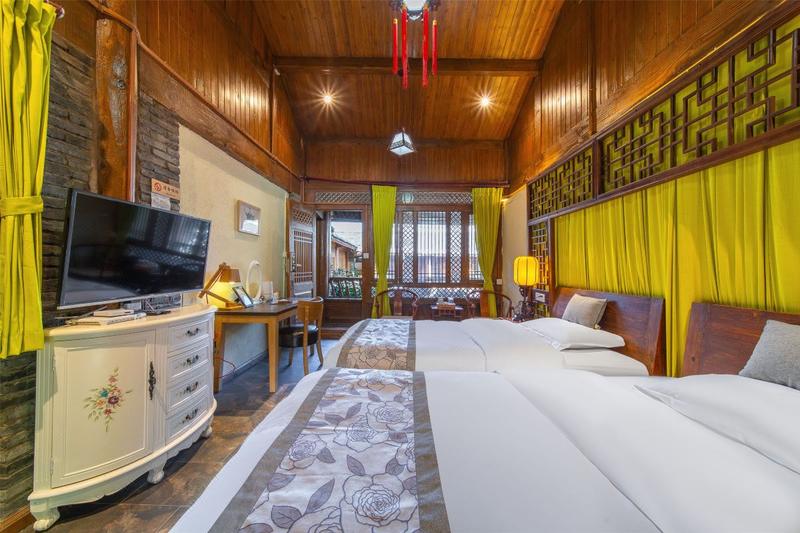位于丽江古城的中心地段,地处七一街八一下段,信步可至著名的木府、四方街。 民宿是由历经300多年,传承了24代人的古宅改建而成,纯中式的装修风格透露出深深古韵。每个房间里的茶具全都是景德镇的青花瓷,制作细腻、手感温润。 经典的纳西庭院里有4个院子,栽种着一棵近100年的老柿树,露台可远雄壮的玉龙雪山。院内树木葱郁、花草丰美,带上家人泡一壶清茶,享受午后的慵懒和悠闲。 早晨到餐厅享受丰富的自助菜品;饱餐一顿之后,火塘、红酒吧、书吧及影音娱乐室,为全家大小准备了丰富多彩的休闲方式。 值得一提的是,客栈将服务做到“尽善尽美”——每到冬天,大到无处不在的地暖,小至房内的毛巾架下都有保暖设施,处处体现着无微不至的暖心服务。