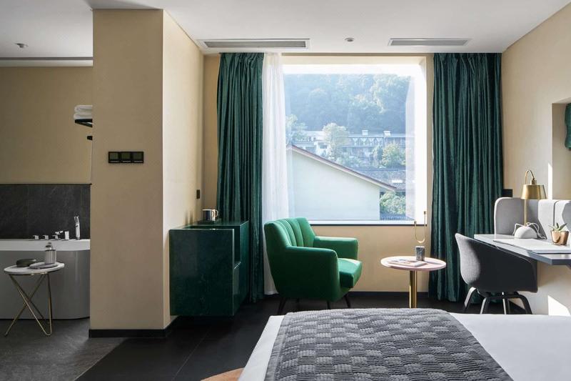 酒店位于上满觉陇,与满陇桂雨和虎跑梦泉比邻而居,远离尘世的嘈杂,是心灵栖息的港湾。 酒店拥有十余间设计精致的客房,每个角落里都藏着小小的惊喜,小桌上的浪漫香烛,B&O的蓝牙音箱,可制冷加热的小冰箱,全区域wifi覆盖,先进的供暖帮你抵御严寒。床品按高星级酒店以上的标准配置,沐浴用品选用140多年历史的意大利品牌Acca Kappa,搭配洁白浴缸,泡一个放松的澡梦也能做的格外香甜。 公共大厅兼具咖啡厅与酒吧的功能,清晨在温暖的阳光中享用早餐,午后在小阳台读书喝茶,夜幕下饮一杯精酿啤酒,窗外天凉如水,夜色斑斓。这里有两颗百年桂花树,在弥漫的桂香中喝茶,聊天,发呆,任岁月的脚步放慢。 愿优质的服务与独特的设计和这些用心发掘的美好事物,能够带给你别样的生活启发。如果你厌倦了周而复始的生活,向往悠然南山的慢时光,那么就来这里吧,穿过拥挤的人潮,与安闲自在的岁月相拥而眠。