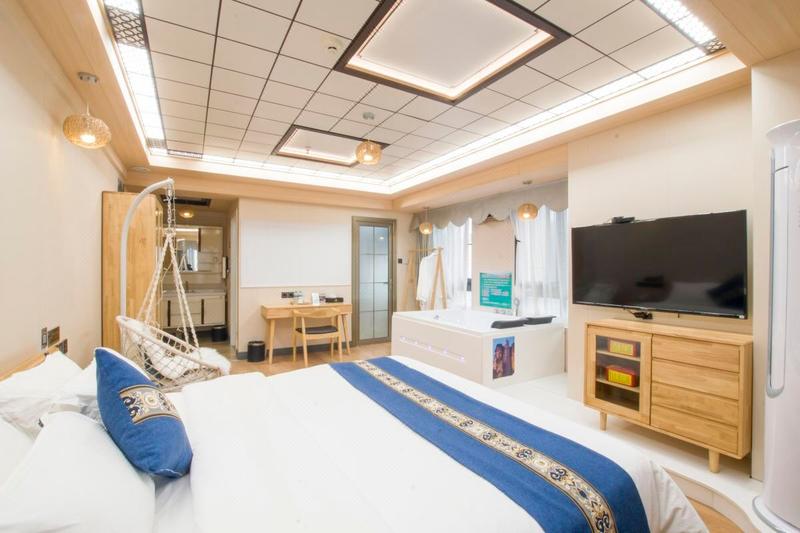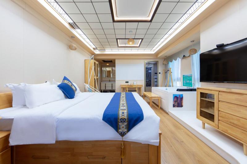 浴缸巨幕影视超宽大床房·宽床大铺+瀑布冲浪按摩+EPSON投影仪133英吋幕布腾讯极光会员