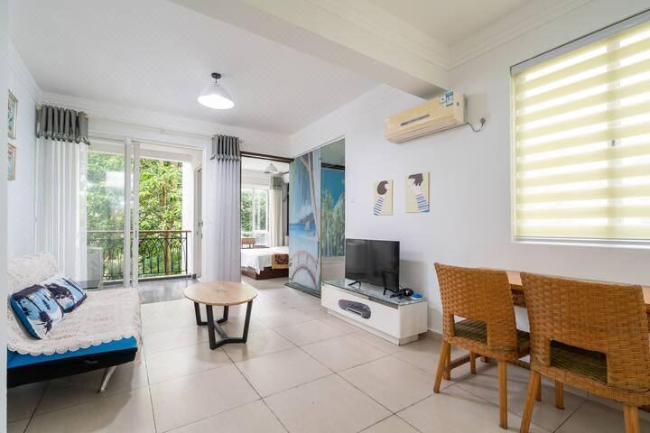三亚亚龙湾阳光别院位于亚龙湾风景区,毗邻热带森林公园,玫瑰谷,海底世界,爱立方滨海乐园,百花谷,亚泰商业区,鸿港市场,周边景区,风情餐厅,海鲜排档,主题酒吧,风味小吃,特产超市应有尽有,吃饭旅游都非常方便。这里气候温和,沙滩洁白细腻,海水清澈湛蓝。本小区坐北朝南,坐山望海,风景如画,各处尽显热带风情园林与西欧式建筑的交相辉映。 阳光公寓为您提供多样化房型选择,所有房间热水,有线电视,无线Wifi,管家服务24小时免费供应。房间空调,冰箱,洗衣机,电热水壶,独立淋浴间,吹风机,晾衣架,拖鞋,一次性洗漱沐浴用品一应俱全。部分房间还可以开火做饭,开火用具租赁需收费(详情请咨询商家)。 阳光公寓前台还提供汽车租赁(收费)和电动车租赁(收费)。前台也是一个平价小商铺,尽可能给您提供最方便的出行和购物服务。无论您是蜜月度假还是家庭出游亦或是商旅出行我们都将以百分百的热情接待您,努力让您有宾至如归的出游体验。去景区或者出游艇,玩海上项目都可在前台直接预订,实力合作商家,车接车送,省钱省力又放心,附近还有免税店免费接送班车,早晚两趟,需要直接咨询前台小姐姐哦!