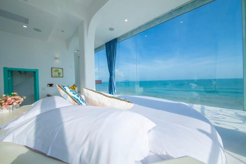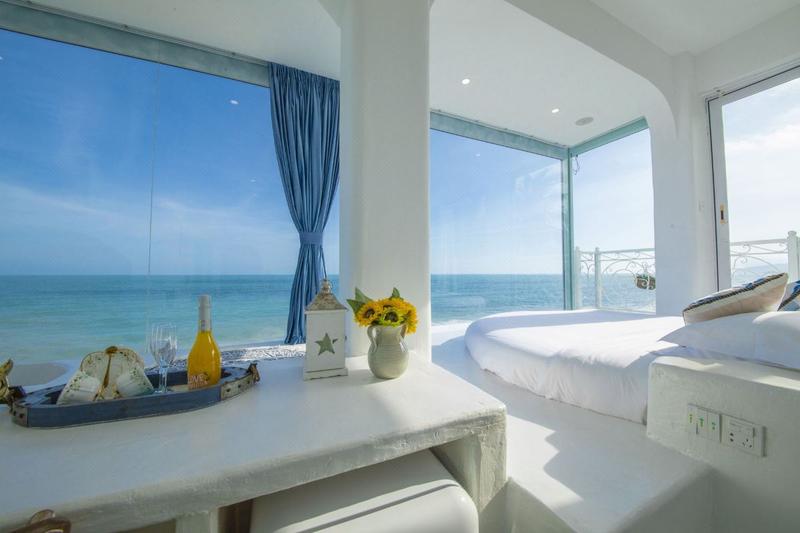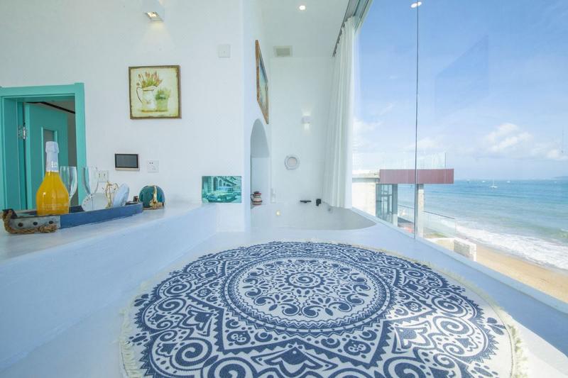 天涯海角,蓝白小镇,世界尽头,最美日落独栋全海景别墅,与大海只一面玻璃之隔。视野开阔,私密性好。海景露台,空中泳池, 坐拥20公里最美黄金海岸线。全屋以远古希腊风格为主,配备环绕立体音响,智能家居,戴森吹风机,进口洗护用品,高级床品布草,超大观海浴缸,泡着花瓣浴,听着海浪,品尝着为您冰镇好的香槟,度假如此之惬意。清晨被海浪轻轻唤醒,一睁眼就能看到日出东方,此刻管家已为您准备好了精致早餐,开启一天的活力。傍晚时分,可在室内或露台拍日落大片,红霞满天,美的炫目,同时也享受着精美下午茶。当夜幕降临,吹着海风,听着音乐,细数每一架飞机划过星空。 白天可以跟着当地渔民去赶海,撒网,抓螃蟹,晚上放着烟花,享受沙滩篝火晚会。民宿左边是天涯海角,右边是南海观音,对面是西岛,都近在咫尺。店家提供免费接送机服务,自驾游,也有专享免费停车位,十分方便。
