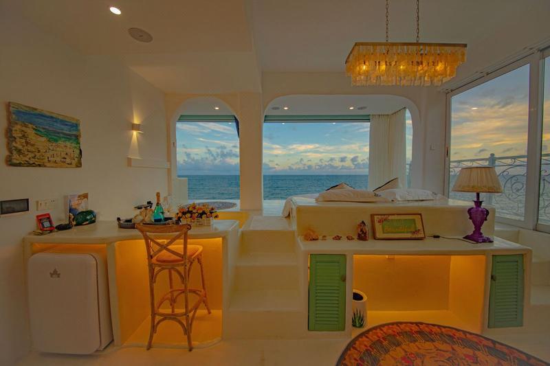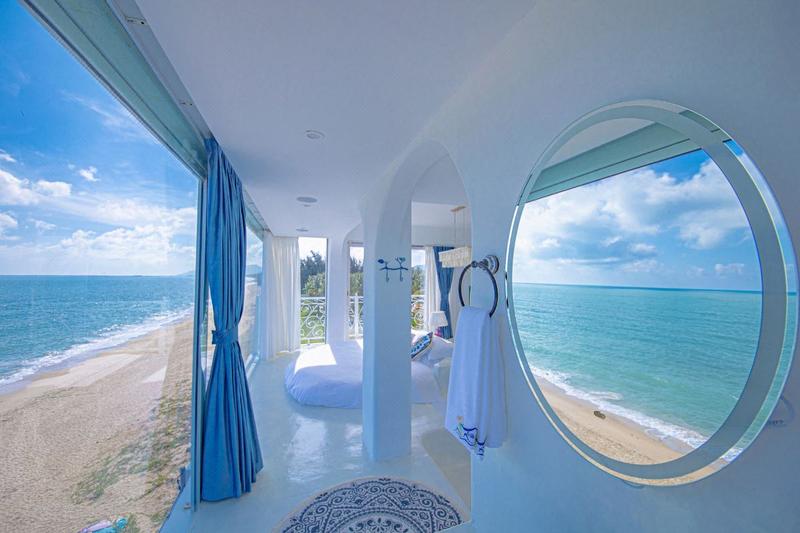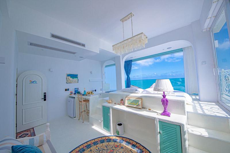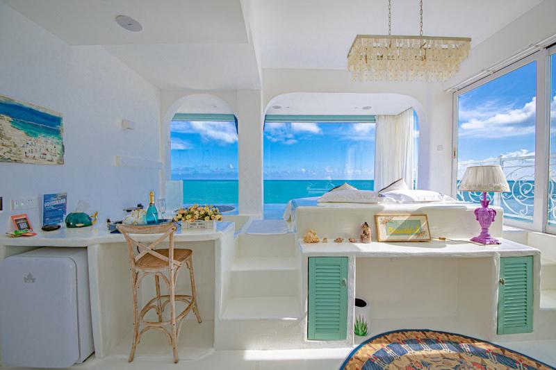 天涯海角,蓝白小镇,世界尽头,最美日落独栋全海景别墅,与大海只一面玻璃之隔。视野开阔,私密性好。海景露台,空中泳池, 坐拥20公里最美黄金海岸线。全屋以远古希腊风格为主,配备环绕立体音响,智能家居,戴森吹风机,进口洗护用品,高级床品布草,超大观海浴缸,泡着花瓣浴,听着海浪,品尝着为您冰镇好的香槟,度假如此之惬意。清晨被海浪轻轻唤醒,一睁眼就能看到日出东方,此刻管家已为您准备好了精致早餐,开启一天的活力。傍晚时分,可在室内或露台拍日落大片,红霞满天,美的炫目,同时也享受着精美下午茶。当夜幕降临,吹着海风,听着音乐,细数每一架飞机划过星空。 白天可以跟着当地渔民去赶海,撒网,抓螃蟹,晚上放着烟花,享受沙滩篝火晚会。民宿左边是天涯海角,右边是南海观音,对面是西岛,都近在咫尺。店家提供免费接送机服务,自驾游,也有专享免费停车位,十分方便。