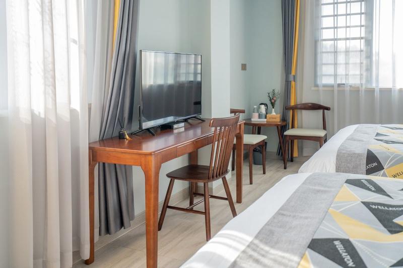 客栈位于梅州市梅县区雁洋镇,毗邻富力足球学校训练基地,距S223线主干道约380米, 位置优越,闹中取静,出行便利。到富力足球营地约1分钟的步行,到叶帅故居约2分钟的车程,到热门打卡点客都人家约6分钟车程,离雁南飞、灵光寺、桥溪古韵、雁山湖旅游景区约10分钟的车程。 生活不止有眼前的苟且,还有诗和远方。远方勿需太远,这里有诗画的田园,精致的景观;这里是叶帅的故乡。 客栈楼高5层带电梯,拥有各类客房共20间,客房设施完善,温馨舒适,干净整洁。可免费停车,四楼设有木屋套房,三面视野,可品茶,可观山,可看到足球场上的小球员为成为明日之星在刻苦训练,还能观赏到学校不定期举办的一些足球赛事。客栈主人与人为善,热情欢迎您的到来!