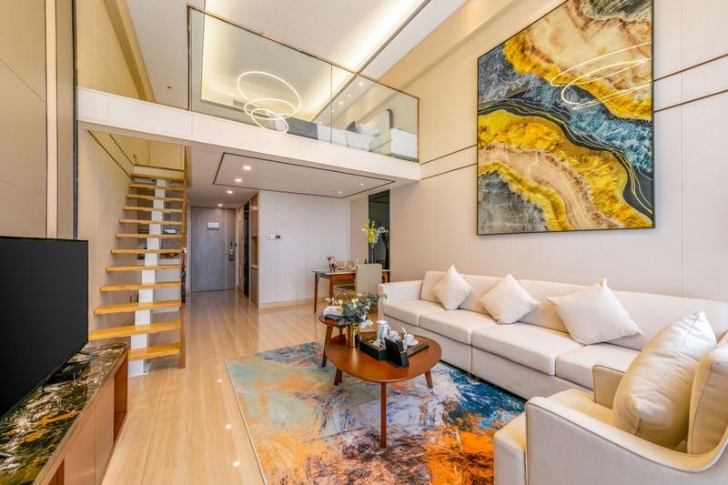 阳江国际金融中心涵盖情景式体验街区、甲级写字楼。该项目是一个集高端精品商务、商业综合体、餐饮、休闲娱乐、购物等多种业态为一体的生活休闲胜地。阳江国际金融中心有阳江270度视角空中餐厅。公寓依托于阳江国际金融中心这个大靠山,尽享金融中心设施设备完善及便利之处。国金公寓外墙是全幕墙low-e中空玻璃采光,既可降低照明能耗,又显得外墙高端大气。国金公寓客房室内采用的是智能新风系统,可根据室内条件自动调节送风量,同时安装的空气净化过滤装饰可确保新风清新品质。国金公寓4.9米奢华层高,可演绎百变空间。