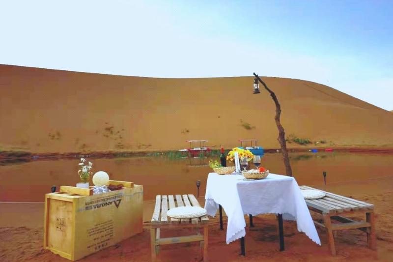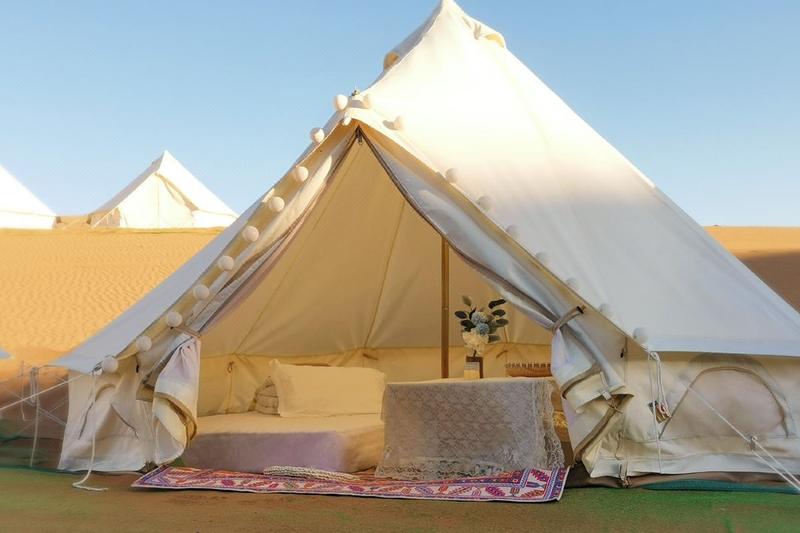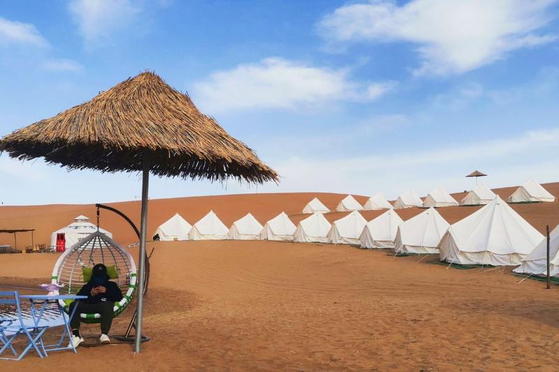 独具摩洛哥风情的沙漠帐篷露营地。 有沙漠草原独特的地理条件 ,沙漠腹地滑沙、秋千、划船,下午茶打卡,旅拍。 帐篷外就是一望无际沙海,骑骆驼,沙海冲浪车,自驾摩托车等沙漠娱乐项目和蒙古特色餐饮均可体验。