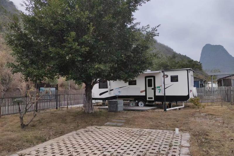 度假村距离贺州市昭平县黄姚桂梧高速黄姚出口、黄姚古镇景区不远,营地三面环山,绿树成荫,正对日出,环境优美。 度假村占地202亩,有豪华房车区、精品木屋区、房车停放区,各项功能设施齐全,露天KTV,露天烧烤场地,是家人度假,情侣出行,公司聚会的理想场所。