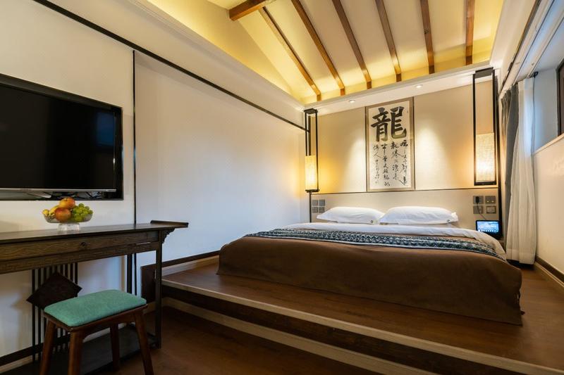 彩云间精品客栈(丽江人文特色店)地处光义街现文巷,近四方街;周围餐饮、娱乐生活配套齐全,出行便利。 是古城少有的中式风格庭院,并且融合了纳西古木建筑的风情庭院,雅致、大气、舒适。客栈主人的品位,加上大设计师的理念,把每一个细节都体现在禅意风格上。根据客人的不同需求,设计了不同的房型,客房以“天、禅、鼎、悟、道、凤”等命名。房间背景的字画,出自北京书协常任理事郭孟祥先生,大师之手笔。 有些斑驳的门楼、古典的大门上嵌有铜制兽头门环,依稀还能看到曾经的茶马古道马帮经过的身影,隐约还能听到已远去的茶马铃声。 院内有品茗、听琴的两处茶室,专设品鉴江苏宜兴顾绍培研究所原矿紫砂壶区域,能尽享专属的鉴壶品茗空间。整个院落中式四合院风格,阳光充足,让你体验丽江高原特有的静好时光。