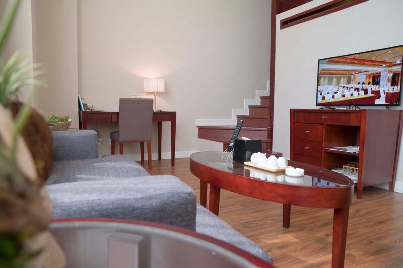 公寓坐落莱山区莱源路,毗邻荣乌高速路口,公寓门口更有机场巴士3号线可直达烟台蓬莱国际机场;临近烟台大学、山东工商学院等烟台学府,覆盖佳世客、银座商城、振华商厦等各大商圈,距离烟台市政府、海水浴场、国际博览中心约8分钟车程,为您的出行提供更多便利选择。 公寓内安装有中央空调,并且提供无线WiFi以及24小时热水供应;客房为复式格局,内部有楼梯,分为上下两层。房内有独立的客厅、卧室与卫生间,电视、沙发、书桌、衣柜等生活设施一应俱全,同时公寓内可满足自己动手做饭的需求。 公寓与高星级酒店共享公共设施,内设健身房、大堂吧、茶室、多功能厅、商务中心等休闲设施,2楼为中式零点餐厅,涵盖鲁粤川湘四大菜系;上雅铁板烧自助餐厅,正宗日式料理. 公寓实行智能化管理,配备有24小时周界防盗电视监控系统,公寓东侧设有全封闭停车场供您使用,为您提供一个整洁、舒适、安全、宁静的住宿环境。