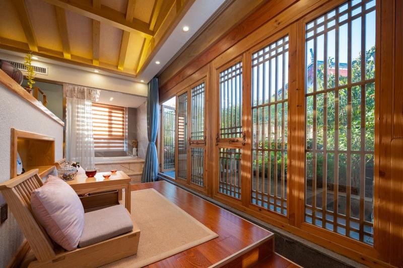 丽江竹语花园别院位于五一街文治巷,近邻狮子山公园、四方街、玉河广场、方国瑜故居,周围环境清幽,出游方便,步行几分钟即可到达古城中心位置,是一家兼备纳西文化和禅文化的精品人文酒店。 酒店整体由国内著名设计公司承建,闹中取静。酒店在基础设施设备上融入更多园林设计,让酒店整体更符合丽江古城的原汁原味。院内清水溪流,栈道别致,从早到晚沐浴温暖阳光,竹语中式庭院意趣盎然,四面房客轻巧地将天井合围,重现丽江雅韵古建筑风仪。由原木铺就的地板覆水之上,丽江水色之意蕴涵藏其中。 客房采用了纳西木之主体结构,融入现代的装修设计理念,能给您提供美好的入住体验。位于顶楼的夜景套房,夜可观群星、赏古镇夜景;清晨可享光影重叠、望自在美景。 酒店设施完善合理,风格简约,拥有特色休闲书吧、开放式禅意茶室及品酒区。更有一对一的私人管家服务,全程关照您在丽江的吃喝玩乐。管家还给您泡上一壶上好的禅茶,酒店提供旅游咨询,满足您的私人定制路线,给您贴心的服务,所有这一切,只为尽可能带给您完美的丽江之行,丢掉城市繁杂,享受这一份宁静与逍遥。手握香茗一杯,与古城怀中,赏四季好景,体验别样丽江。