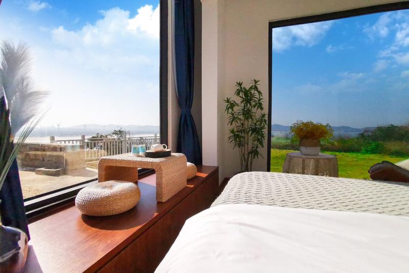 第三境,是一种生活方式,也是一种意境。是对亲人的爱,释放工作压力、放飞自我、乐享生活的地方……以“民宿+旅行+源地好物”相结合的方式,打造积极向上的第三生活空间文旅品牌。 “第三境”选择了海,在平潭国际旅游岛长江澳风车田景区磹水村,拥有了三栋石头厝民宿:“第三境/梅园”、“第三境/牧日堡”、“第三境/磹水壹号”——每一栋都拥有无敌大海景,阳光、沙滩、蓝眼泪、风车田、海风明月、爱侣亲朋…… 第三境·梅园”就是其中一栋,是我们的接待处,登记小憩都在此处。梅园种满了花花草草,其中以三角梅为最多,故名“梅园”,一年四季“面朝大海、春暖花开”。梅园共二层,一楼是接待大厅,有厨房、茶桌、咖啡、冷饮,还有很棒的音响和音乐,晚上可以喝酒或唱歌。梅园二楼是客房,V1和V3是家庭亲子房,视野都非常好。V2是梅园的网红大床房,电动窗帘徐徐打开,无敌大海景扑面而来,那种快活,非身临其境无法形容,想入住的话,一定要提前预订。 磹水壹号由一栋古老的石头厝(厝是福建沿海一带称呼房子的意思)改造而成,非常有本地渔村气息,又兼具舒适的入住体验。磹水一号距离梅园300米,共六间房,分别是:见贤、听海、品味、闻香、悟道、感恩,每间都独具特色,最经典和抢手(需要提前预订)的是“见贤-星空海景大床房”,大床上方开了一个大大的天窗,晴天的晚上打开电动窗帘,独自一人或和心爱的人,躺在床上数星星,天下间的浪漫和自在,不过如此。 牧日堡是三栋中较大的一栋,一共有十一间客房。距离梅园300米。 牧日堡耸立在“醉美环岛公路”边的山腰上,临海而建,站在这里,可以欣赏到长江澳沙滩景区全帽,也是醉佳观赏长江澳沙滩日落的位置之一。 牧,古代有统治、管理的意思。海上牧日!只是想上一想,就觉得意气风发、豪情满满,那缓缓落下的娇(娇羞)阳,那光芒四射的霞光,那时而狂放时而温顺的海浪,还有那君山上面升起的圆月,白花花、亮莹莹,洒入大海……住在这里,便一晚,也是一生的记忆。