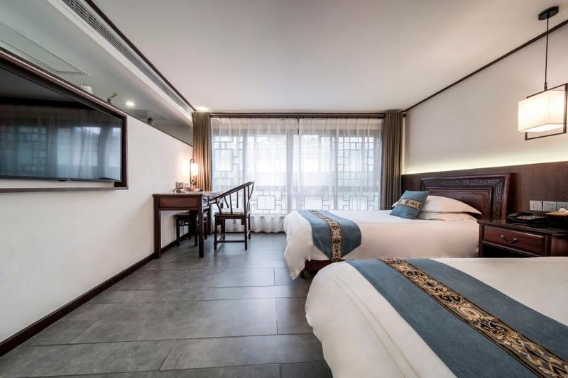 太白楼山庄是一家有着三十多年历史的高端民宿,位于九华山景区内(山上)中心地段,毗邻百岁宫缆车和九华老街,距离景区大门约200米,位置优越,出行方便。 酒店依山而建,以九华山徽派古典建筑风格为基调,庭院内苍松翠柏,环境清幽宜人,让您悠然恬淡静享时光之慢。房间采用小叶红檀打造的复古家具,缔造传统中式美学;配备高端智能洁具,先进电热衣架,为您提供人性化的居住体验;配以小米AI智能音响、高端品牌洗浴用品,让您愉悦、安心、舒缓压力;精选茶歇和经书临摹,让佛教传统文化在旅途延续,聆听内心的平和。山庄希望在您探寻本真的禅意生活的同时,为您提供细致温润的贴心服务。
