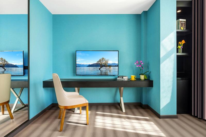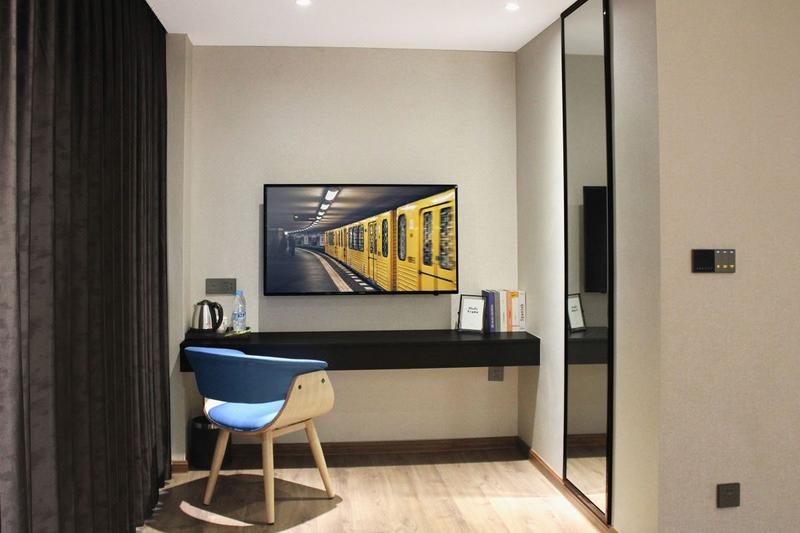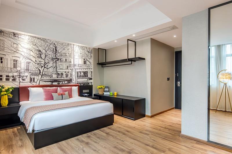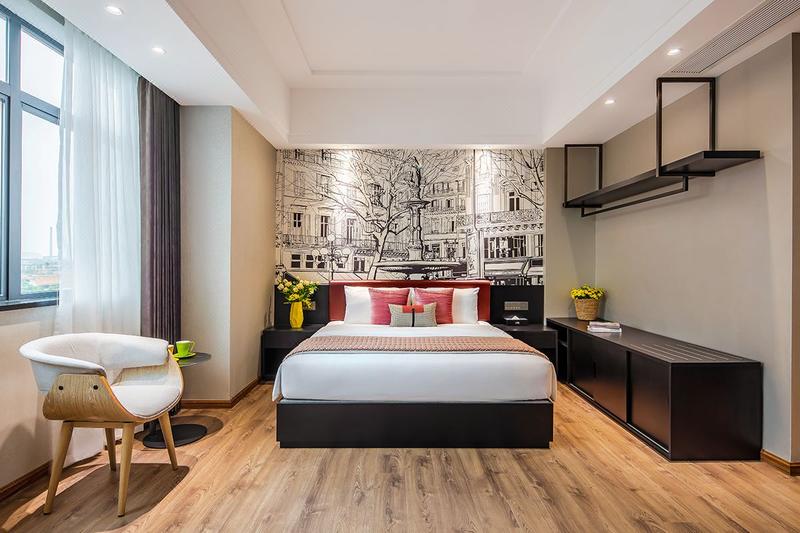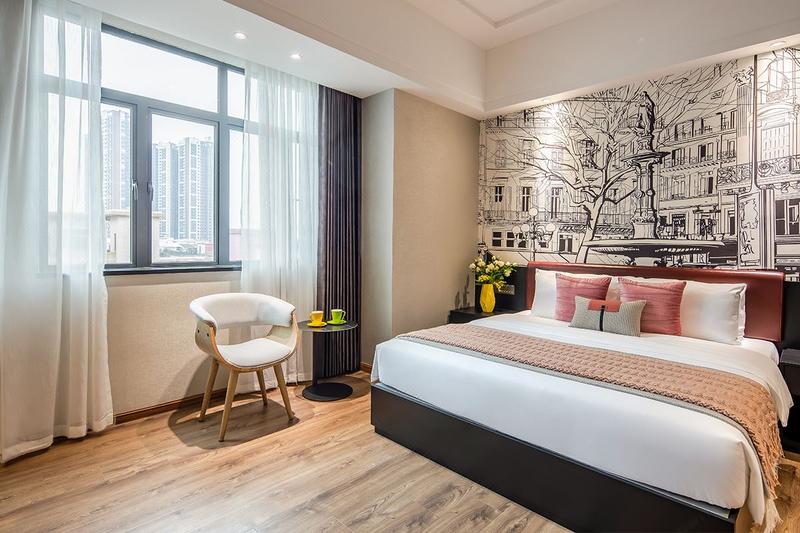 酒店座落于顺德容桂商业步行街,占地面积约1200平方米,楼高8层,配套有客房、餐厅、书吧、会议室、健身房、洗衣间,免费停车场。步行2分钟可达著名网红打卡点景点AAA级旅游景区渔人码头、德胜河畔南岸公园。容桂客运站、城轨站约10分钟车程,距顺德华侨城欢乐海岸15分钟左右,地理位置优越,交通便利,环境优雅,周边顺德特色美食、购物等配套齐全,集商务和休闲为一体。客房按星级标准装修,以简约轻奢的主题设计以及色彩的配搭,让宾客感受到舒适低调明快而又不失奢华的气息!