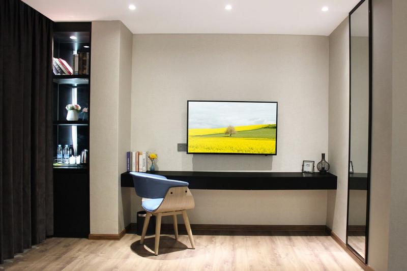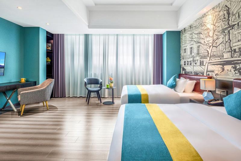 酒店座落于顺德容桂商业步行街,占地面积约1200平方米,楼高8层,配套有客房、餐厅、书吧、会议室、健身房、洗衣间,免费停车场。步行2分钟可达著名网红打卡点景点AAA级旅游景区渔人码头、德胜河畔南岸公园。容桂客运站、城轨站约10分钟车程,距顺德华侨城欢乐海岸15分钟左右,地理位置优越,交通便利,环境优雅,周边顺德特色美食、购物等配套齐全,集商务和休闲为一体。客房按星级标准装修,以简约轻奢的主题设计以及色彩的配搭,让宾客感受到舒适低调明快而又不失奢华的气息!