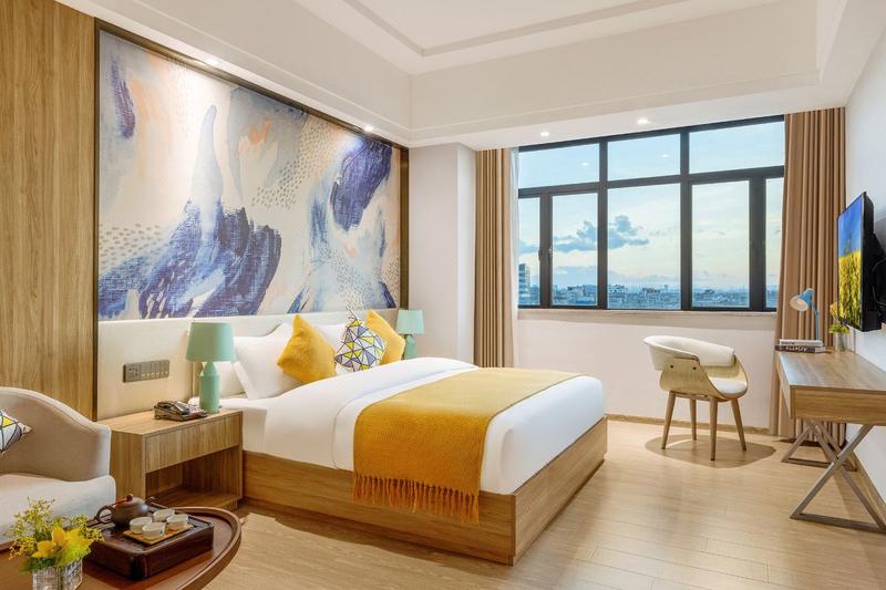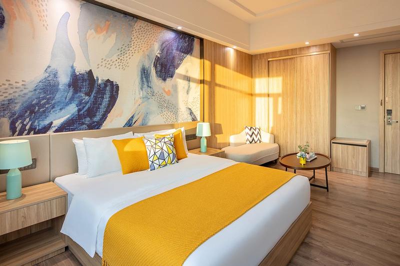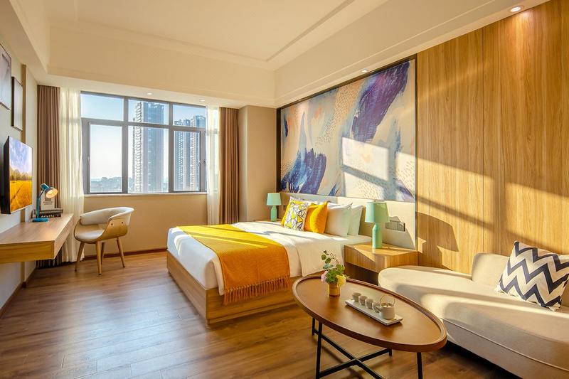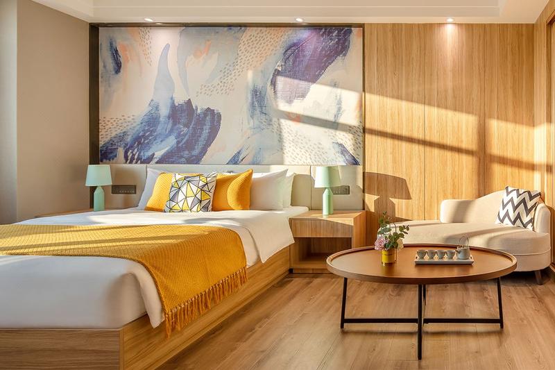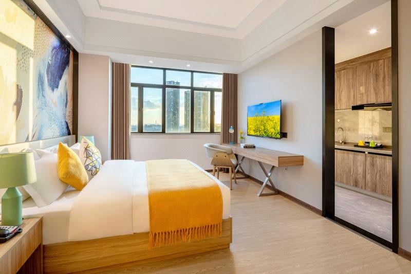 酒店座落于顺德容桂商业步行街,占地面积约1200平方米,楼高8层,配套有客房、餐厅、书吧、会议室、健身房、洗衣间,免费停车场。步行2分钟可达著名网红打卡点景点AAA级旅游景区渔人码头、德胜河畔南岸公园。容桂客运站、城轨站约10分钟车程,距顺德华侨城欢乐海岸15分钟左右,地理位置优越,交通便利,环境优雅,周边顺德特色美食、购物等配套齐全,集商务和休闲为一体。客房按星级标准装修,以简约轻奢的主题设计以及色彩的配搭,让宾客感受到舒适低调明快而又不失奢华的气息!