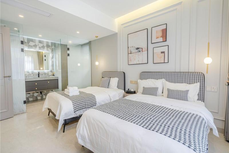 酒店坐落于有马尔代夫之称的惠东港口滨海旅游度假区建于“双月湾”景区内,坐拥双月湾全景景观,东靠东山海,北接巽寮湾,交通便利。周边吃喝玩乐一应俱全,有激情四射的网红礁石酒吧和紧邻全球大陆架的海龟自然保护区,步行出门约10分钟可见海鲜美食街,同时也可以到双月湾观景台观望地面上未有的风景,醉美日出日落,让自己身心感到一刻的放松。 酒店配套丰富高端,有配置烧烤炉让你的入住更添烟火,定制KTV影音设备,棋牌桌以及自助厨房,高定床品和24小时贴心管家服务让您的充实愉快流连的旅途。 酒店房型房源风格多套随机安排并且分散园区内,且接待地址和入住地址都在园区,入住时请提前联系酒店,获取入住房号以及精准定位,实际入住地址可能与系统地址不同,入住前请提前跟酒店联系。 酒店秉承着“热情微笑,尽善尽美”的服务理念,贴心为您服务,我们期待您的到来!
