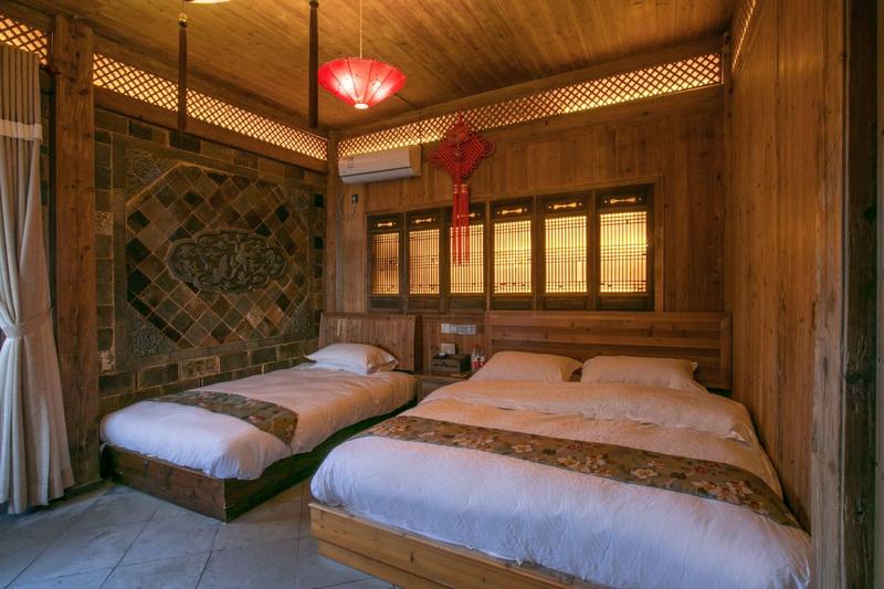 宏村黛晴房精品客栈位于宏村景区内南湖边,距景区正门口步行约2-3分钟,距塔川景区约3公里路,距卢村约2公里,是来徽州旅行根据点的不二之选; 你是否住过200多年的老宅子?住在历史悠久的老房子里又是种什么体验呢?想知道的话,那你就值得来黛晴房体验一下。两百多岁的房子,从里到外都透露着浓厚的神秘感,房间装修也是古香古色的,整洁干净,房间装饰外表古朴,内部却雅致大气,别具一格。老宅子很大,名宿免费提供汉服拍照,在古香古色的环境下穿着美美的汉服,给人一种穿越回古代的朦胧感; 民宿就在南湖边,无论是什么季节,无论是什么天气,走在一步一景的南湖边,你总能找到自己想要的风景,黄昏时去不远的南湖堤岸走走,落日的余晖洒在湖对面的古村中,呈现出一片金黄色,显得宁静柔和; 黛晴房总共拥有三处院落,壹号院是个古香古色的小院子,精细的木雕,绝美的砖雕,一砖一瓦无不展现着主人的用心;贰号院在一个安静的小巷子里,一颗硕果累累的柿子树立在院子中,一个百年的老宅子,寓意着住进老宅子的每一个客人都能事事如意;叁号院就在南湖边,出门就是湖堤,步步是景。 黛晴房客房内均配备液晶电视,空调,无线网络,矿泉水,茶叶茶具,独立卫生间,床品均一日一换,每天干洗消毒。更有特色徽菜湖景餐厅可供餐饮。