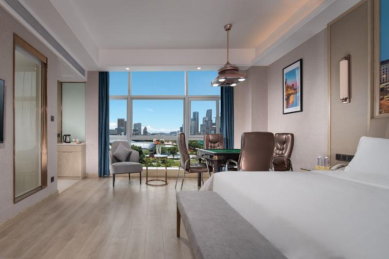 公寓位于前海自贸区核心商务区的月亮湾大道,毗邻广深沿江高速出入口、地铁9号线怡海站C出口,出行便利。公寓作为政府指定接待单位,位置面向前海自由贸易试验区、前海国际会议中心,并肩南海中学、立桥城购物中心,距离网红打卡地的“湾区之光”摩天轮、“鹏城十景”之一青青世界约5分钟车程,距离海岸城购物中心、深圳湾公园、海上世界约10分钟车程,距离深圳湾口岸、蛇口游轮中心约15分钟车程,距深圳国际会展中心约25分钟车程。 公寓拥有精美客房,豪华客房36平米起、套房82平米起,全落地景观窗可享受到令人陶醉的自贸区灯光秀,繁华都市美景尽收眼底。 公寓共有600平方米的会议空间,全部配备超大型整墙LED屏幕,是各类VIP接待,大型精致晚会和企业活动的理想场所。 自助洗衣房等配套服务设施,满足商旅人士一站式服务需求。 公寓地下两层超过200个停车位的大型停车场,为各商旅客人带来极为便利的停车服务。