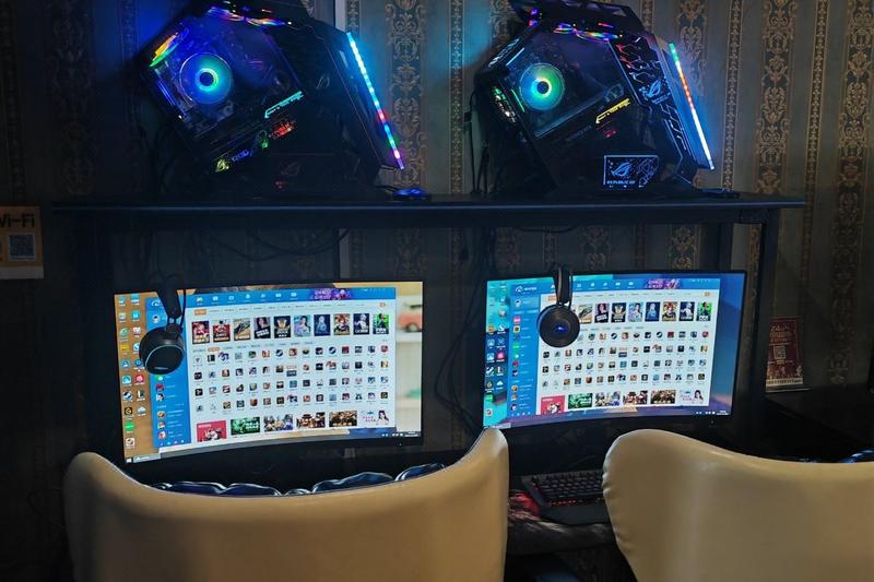 酒店电脑均为32寸165HZ寸曲面高清电竞屏。顾客不仅可以享受娉美网吧的高品质电竞体验,还可以拥有住酒店的舒适体验。