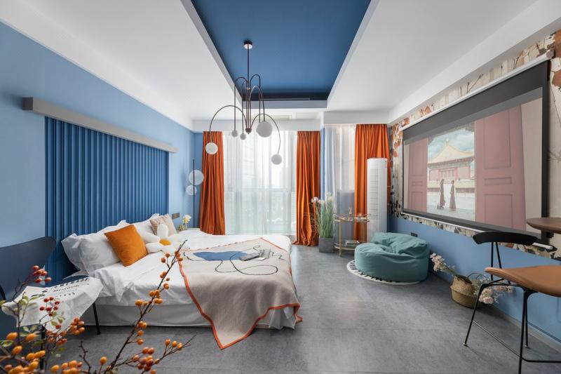 - 房间(开放): 楼 蓝色碰撞影院大床房