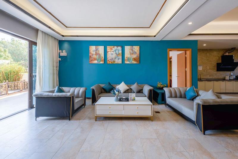 房间:蓝鲸灵5房9床烧烤花园别墅(私家泳池+宴会桌+麻将+厨房)