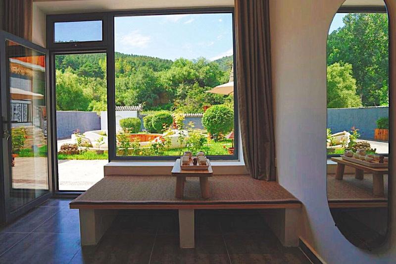 我们传递的是一种生活方式,我们准备了这样一套原木、青瓦、白墙交相辉映的房源,远观群山叠起、清净安谧、野趣自然,是繁华里的清净地。云开时见山,林深时见鹿,梦醒时见你。在这隐世的山野里您可以做一回快乐的农夫,和房东一起采摘新鲜的蔬菜;可以沏上一壶好茶,做一回隐居山野的雅士;可以同爱人一起静享幸福甜蜜的约会;可以陪伴孩子拥抱淳朴又充满趣味的的大自然;可以和闺蜜品尝店主亲自烘烤的甜品和咖啡;可以同朋友、同事一起狂欢轰趴...在无边泳池旁的平台上,您可以欣赏到落霞的柔美与星空的浩瀚,聆听野鸟的天籁之音,带走城市的喧嚣和雾霾,留下的只有青云和恬淡。民宿配备了丰富而宽阔的公共娱乐空间、精致的庭院、吸睛的无边泳池、超大的开放式厨房、烧烤场地、KTV、家庭影院、茶吧与书籍、儿童玩具、水果采摘园等。室内布置温馨整洁,给人一种舒适感,装修古朴典雅,所用木材皆为原木,所有木柱均出自和珅府,是房东收藏多年的老古董。客房配置24小时热水、独立卫浴(部分客房配有观景浴缸)、欧舒丹洗漱用品、负离子吹风机、智能马桶、电视、空调、电热水壶等,另有邓禄普乳胶枕、荞麦枕、羽绒枕、ventry儿童枕等多种类型枕头可供您选择。超大的开放式厨房配有全套烹饪所需物品、烤箱、面包机、手冲咖啡壶等。您可以亲自动手做一桌精美的佳肴也可以享受我们自带的餐饮服务。我们选用新鲜的应季食材,滋滋冒油的秘制烤全羊,健康味美的家养柴鸡,加上清甜的时蔬,阿姨亲手擀制的炸酱面,香喷喷的大包子,都是您在城市里难能可见的鲜美佳肴。足够大的厨房,能让好朋友们聚在一起制作道地的手作美味,一起完成料理后,暖心的丰富餐桌,窗外山林里蛙声蝉鸣不断,萤火虫隐约在爬满植被的山野中闪光,这一切都散发出单纯满足的治愈感,觥筹交错,其乐融融。