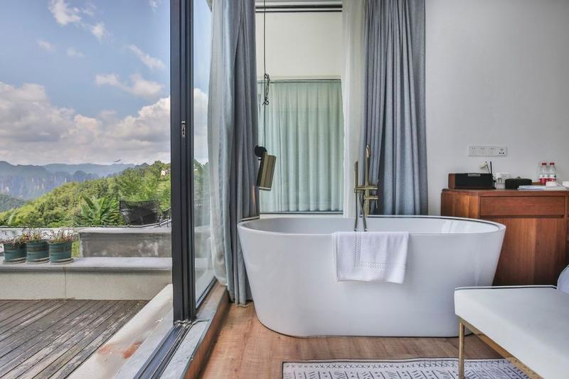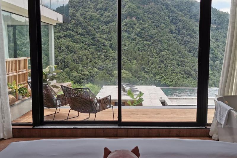 "张家界网红民宿“璞舍民宿”,位于武陵源区协合乡龙尾巴村,这里依山伴水,有峡谷有梯田,还有云海; 这里与张家界国家森林公园互为邻居,还有免费的徒步登山路线; 这里有中国有价值的高含量负离子空气,还能品尝到清凉透骨的山泉。我们的房间配置: 星级床垫及康乃馨布草,房间配置豪华全自动智能马桶,箭牌卫浴,无敌景观套房拥有按摩大浴缸Bose/JBL蓝牙音箱,一次性沐浴用品全套,免费拖鞋,浴袍,热水壶,大功率吹风机,只为让你感受山间的美妙,舒舒服服的睡个好觉。我们的特色: 我们的每个房间都有无敌的山景,躺在床上就可以远眺张家界国家森林公园的山景,民宿配备有一个全日制特色餐厅,多功能影音室以及茶室,和一个户外平台小清吧,可以相聚在此看大电影;晚上相约小酒吧,在乡间看星星,听音乐,自助烧烤,喝酒聊聊,无疑也是一种美事。我们二期还打造了一个峡谷无边际无敌景观泳池,清爽一夏,网红打卡。 我们还有一个山景SPA房,看着山景,做着SPA,无疑是一种享受。老板情怀:老板小赫,在广州10年,热爱民宿行业,喜欢旅行,结交好友,16年回家创业,带着梦想,带着情怀,开启璞舍高端度假民宿,在享受张家界的仙境美景同时,可以慢下来,感受张家界不一样的美,也愿结识有缘的你。我们的服务:我们致力于细致而贴心的管家服务;一切的服务都是有温度,让你感觉就像回到了远方的故乡,在这里,一切都慢下来,山中歇一日 世上已千年。"